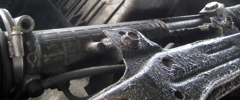 Good condition. No leaks. Fluid in photo had dripped down from a leaking power steering hose. Rack only. No tie-rods, boots, hoses, or reservoir included. Pump sold separately, see below.